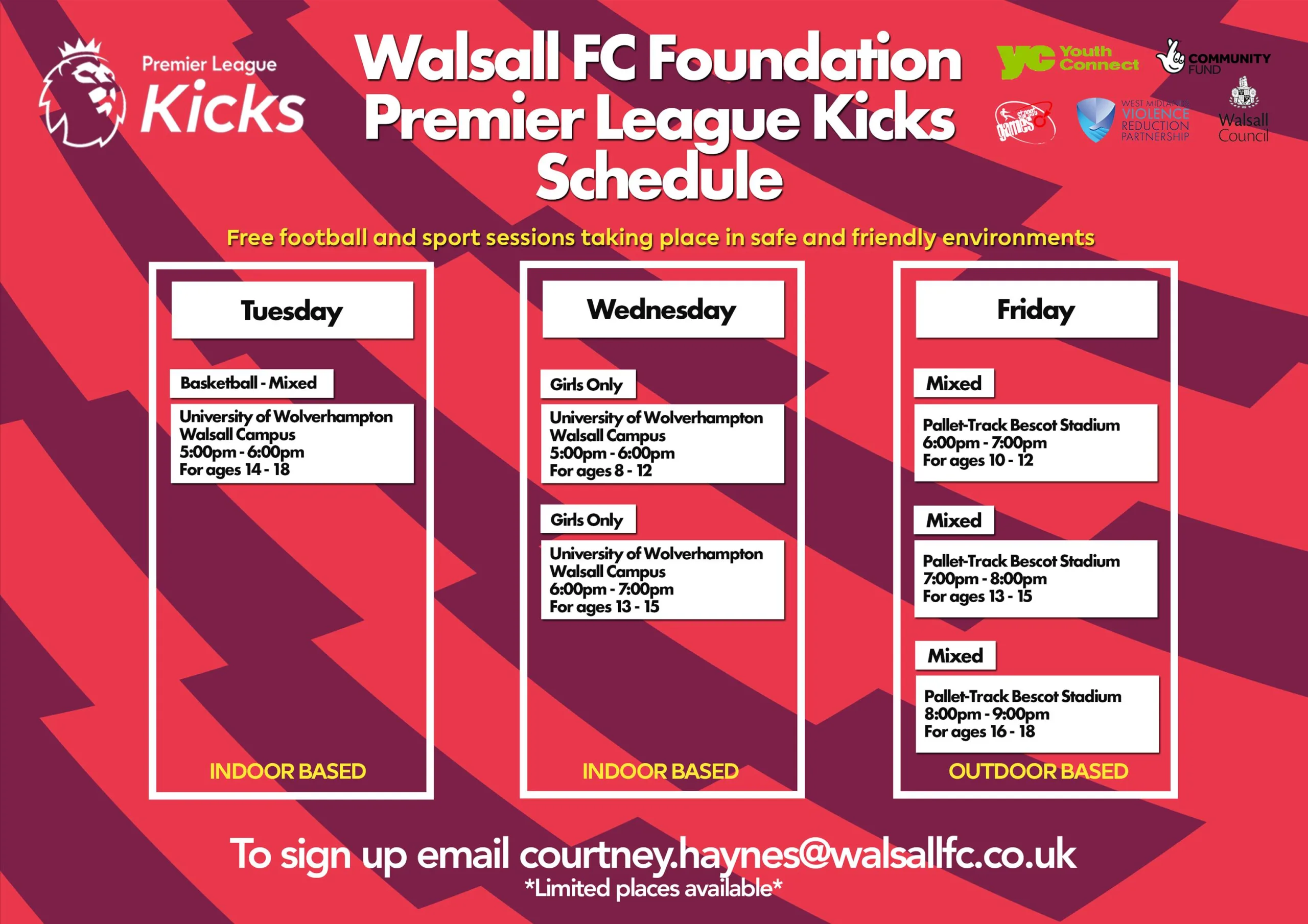 To sign up to our free sessions please contact: martin.manley@walsallfc.co.uk