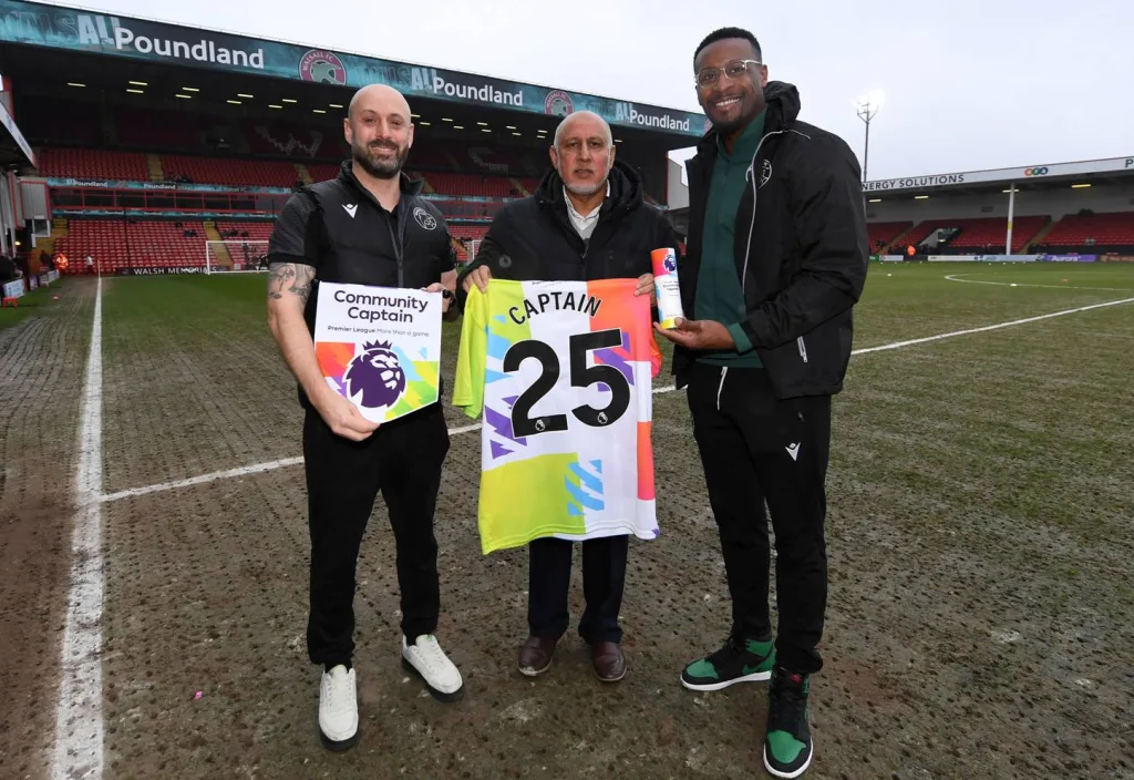 Saddlers captain Donervon Daniels joined Arif at half-time, to present him with a Community Captain trophy, armband, pennant and bespoke More Than A Game shirt to mark his outstanding commitment to the local community.